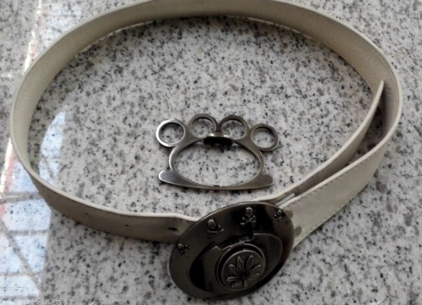 手盔,是采用金屬或者高強度材質做成的套在四個手指上的一種攻擊性武器,材料堅硬,即使是一個普通人帶上后也能夠擊碎磚頭。屬于機場嚴禁攜帶的違禁品。前幾日,在安徽省合肥機場安檢處安檢員就查獲一只偽裝在皮帶上的隱蔽式手盔。